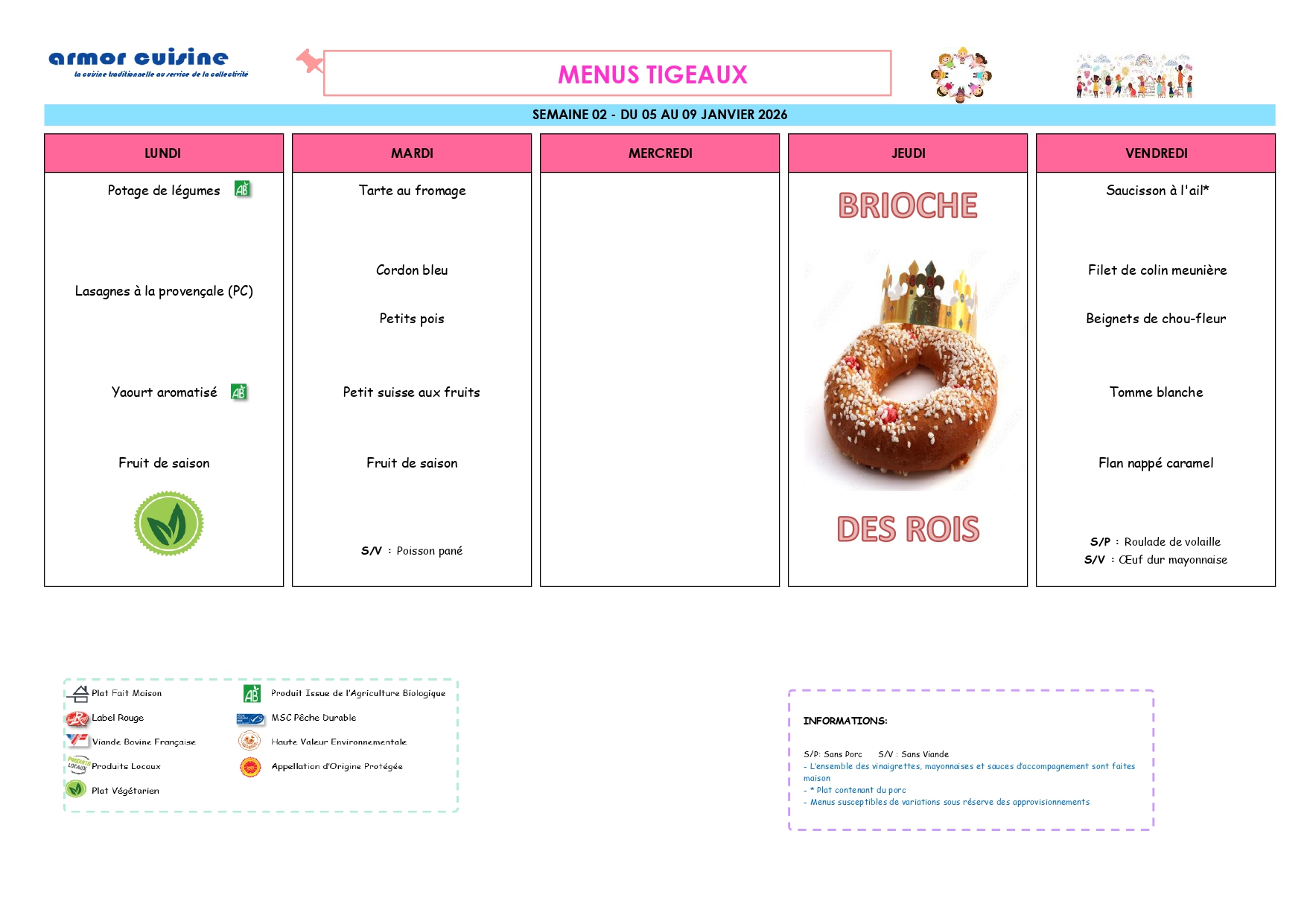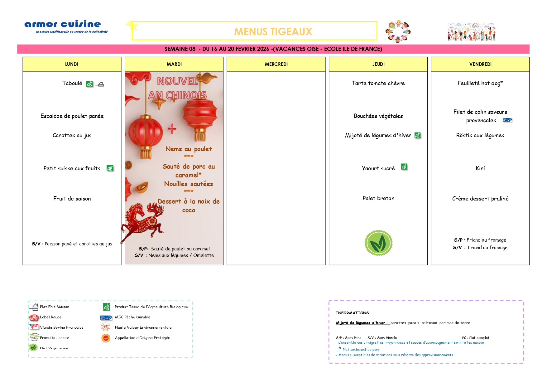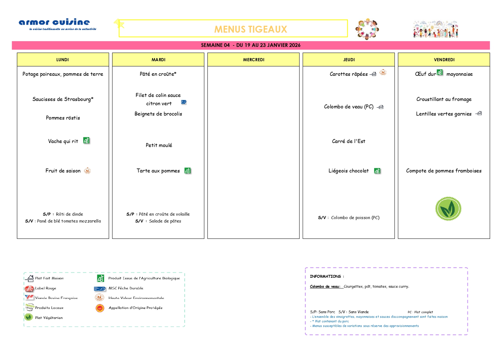 La fourniture des repas est assurée selon le principe de la liaison froide par un prestataire extérieur qui livre quotidiennement des plats nutritionnellement équilibrés.